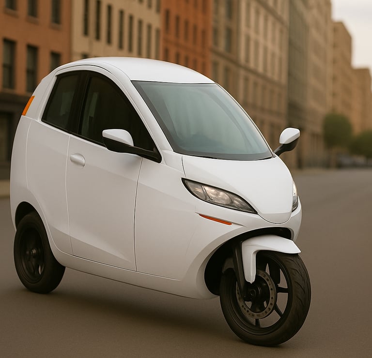 Freedom and efficiency of two wheels with the safety and comfort of a car - at a price everyday people can afford.